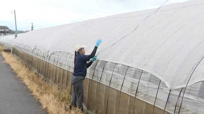 ビニールハウスが飛ばされないよう、朝から技能実習生らとともに40棟あるすべてのハウスでロープでビニールを押さえつける作業に追われていました。