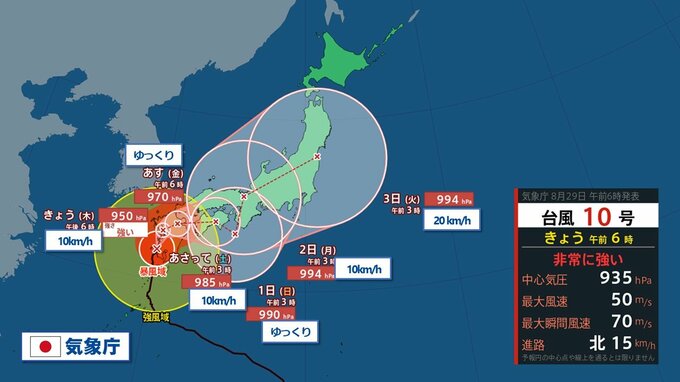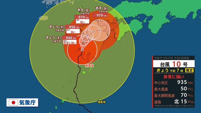 非常に強い台風10号九州上陸 次第に東へ進路を変えるが・・・