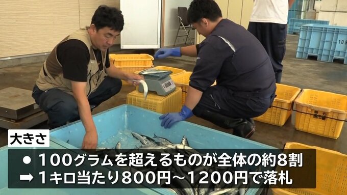 また大きさも100グラムを超えるものが全体のおよそ8割を占め、1キロ当たり800円から1200円で落札されていました。