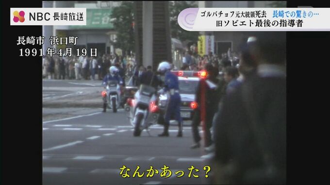 大統領時代の1991年4月には長崎を訪問。ロシア人墓地がある稲佐の悟真寺に向かう途中、突然車を止め、ライサ婦人と共に車を降りて、手を振りながら歩く一幕も!沿道につめかけた市民にこたえました。