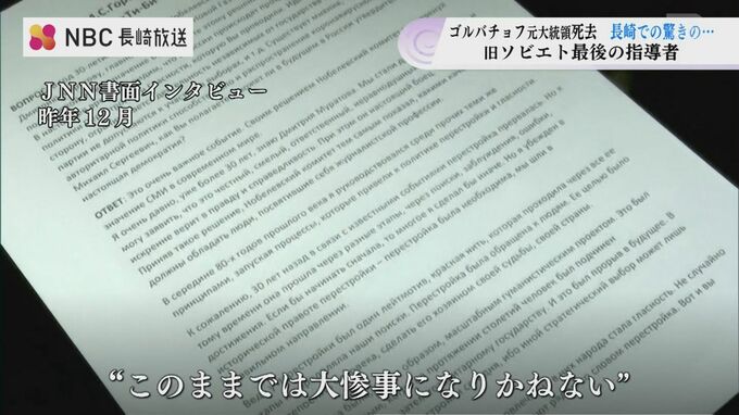 ロシアがウクライナ侵攻を始める前の去年12月に応じたJNNの書面インタビューでは「このままでは大惨事になりかねない」と警鐘を鳴らすと共に、「責任ある対話への移行が一刻も早く行われるようできることは何でもしなければならない」「冷戦を終結させたのは再び冷戦の足音を聞くためではない」と述べていました。