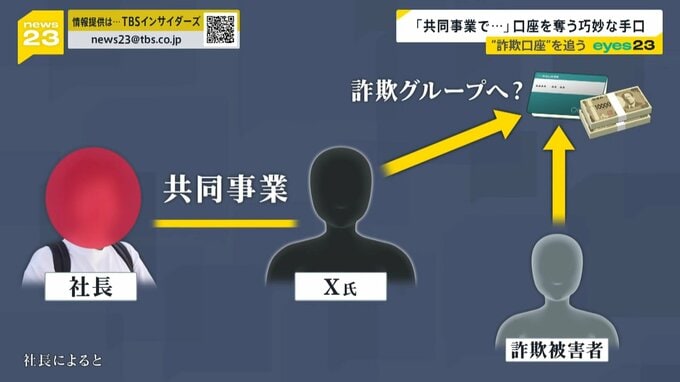 記者に驚きながらも、淡々と取材に応じた社長。口座が詐欺に使われていると認め、こう主張しました。