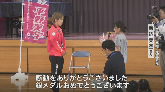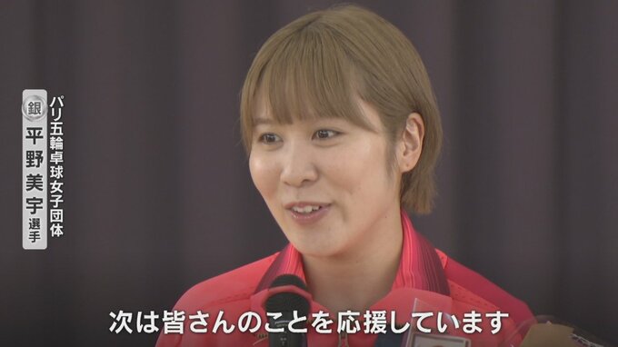 パリオリンピック™卓球女子団体で銀メダルを獲得した山梨県中央市出身の平野美宇選手が地元に凱旋、母校の後輩らに応援への感謝の気持ちなどを伝えました。