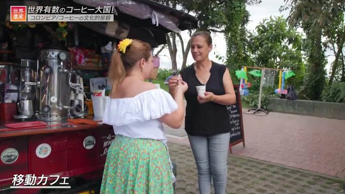 コロンビアの人たちはコーヒー好きで、街の各所にカフェがあり、四駆を改造した移動カフェも街角に現れます。さらに国民みんなが知っているコロンビア・コーヒーのイメージキャラクター(ソンブレロみたいなつば広の帽子をかぶった髭のおじさん。常にラバと一緒にいる)までいて、独特のコーヒー文化があります。