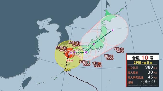 台風10号は、30日夜のはじめごろから31日にかけて、愛媛県内に最も接近する見込みです。県内は30日の夜にかけ線状降水帯が発生する可能性があり土砂災害に厳重な警戒が必要です。台風10号は、午後5時現在、長…