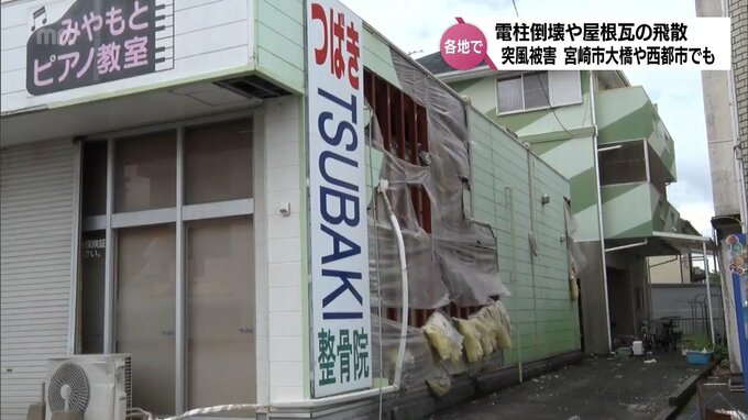 台風10号による突風の被害は、宮崎市大橋でも発生しました。このほか、西都市では電柱が倒れたり、屋根の瓦が飛んだりする被害が相次いでいます。こちらは、29日午前8時ごろの宮崎市大橋の様子です。(木山奈緒デ…