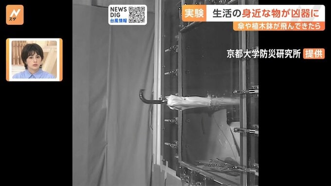 「その辺にあるような物でも非常に危険な物に」 秒速30m 傘がガラスを突き抜ける