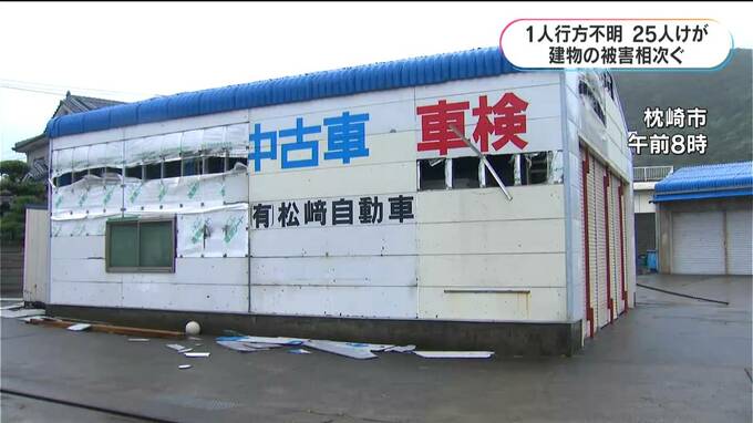そのほか、枕崎市では、工場の壁が崩れ落ちたり、屋根瓦が飛ばされたりしたほか、奄美大島の龍郷町だけでも家屋損壊の被害が24棟、確認されました。
