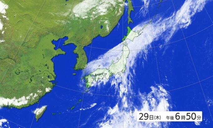 相変わらず“ノロノロ”スピードで北上・迷走を続ける「台風10号(サンサン)」。気象庁は29日午後7時45分に「台風10号」の実況・推定・予報を更新した。その情報によると「台風10号」は29日午後7時現在、長崎県の「島原市付近」にいる。