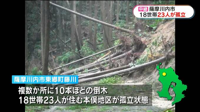 薩摩川内市では倒木により道路が寸断され18世帯23人が孤立しています