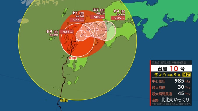 【台風情報】台風10号(サンサン)今後の進路・勢力は?【最新進路予想図・気象庁データ(29日午後9時更新)】
