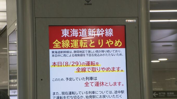 東海道新幹線は静岡県内で激しい雨が降り続いた影響で、29日午後7時前に全線で終日運転を取りやめました。