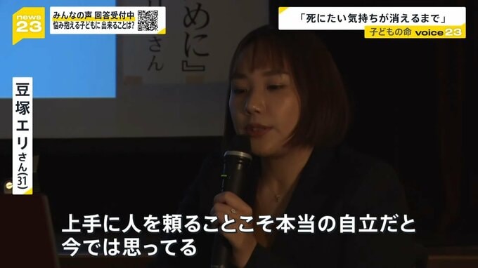 「自分が生きづらいと思っていたのは、自分が悪いのだとずっと思っていた。そういった居場所というのが子どもには本当に少ない。自分の至らないところや欠点を認めて、上手に人を頼ることこそ、本当の自立だと今では思っている」