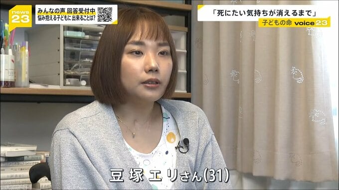 豆塚エリさんは高校生だった16歳のとき、飛び降りて自殺を図りました。地元の高校では文芸部の活動などに励んでいました。ただ、人知れず悩みを抱えていました。
