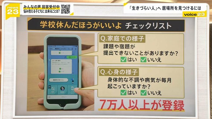 不登校の支援団体と精神科医の方が作られた不登校チェックリストというものがあり、これには1年間で7万人以上が登録しています。20の質問項目があって、お子さんの言動によってチェックを入れていくと、この基準ならもう休ませた方がいい、といった親の判断のサポートになります。
