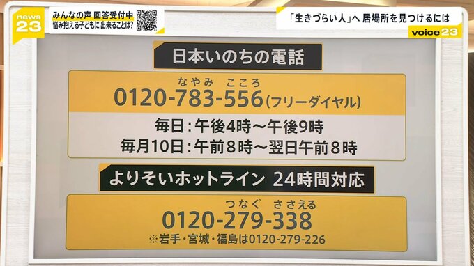 どこに頼るべきか、頼る場所を皆さん探してると思うんです。例えば、今悩みを抱えている方には、いのちの電話などの相談窓口があります。厚生労働省のホームページを見ると、その他にもいろいろ相談窓口が紹介されています。少しでも何かのきっかけに繋がれば。