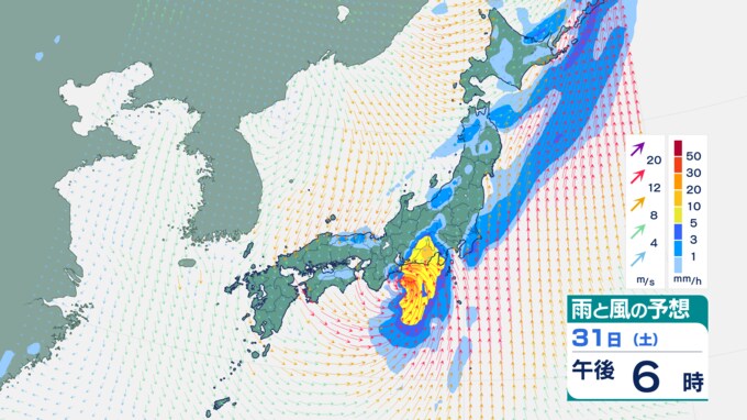 滋賀県、京都府、大阪府、兵庫県、奈良県、和歌山県…30日夜~31日午前中にかけて