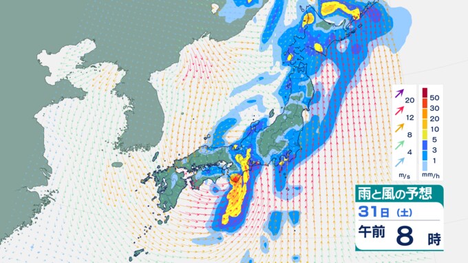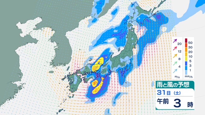 徳島県、香川県、愛媛県、高知県…31日午前中にかけて