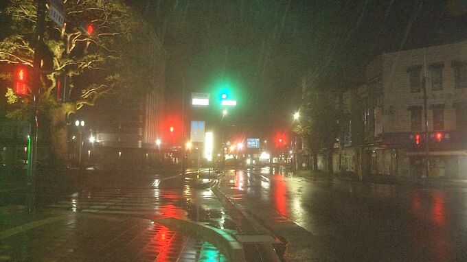 台風10号は午前6時、由布市付近にあってゆっくりとした速さで北東に進んでいると推定されます。中心の気圧は992ヘクトパスカル、中心付近の最大風速は23メートルとなっています。
