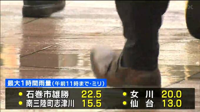 台風10号の影響で、暖かく湿った空気の流れ込みが強まっているため、県内各地で雨が降り、午前11時までの最大1時間雨量は、石巻市雄勝で22.5ミリなど、強い雨が降った所もあります。午後も大気の不安定な状態が続くため、北部を中心に雨が降り、局地的には、1時間に30ミリの激しい雨が降るおそれもあります。