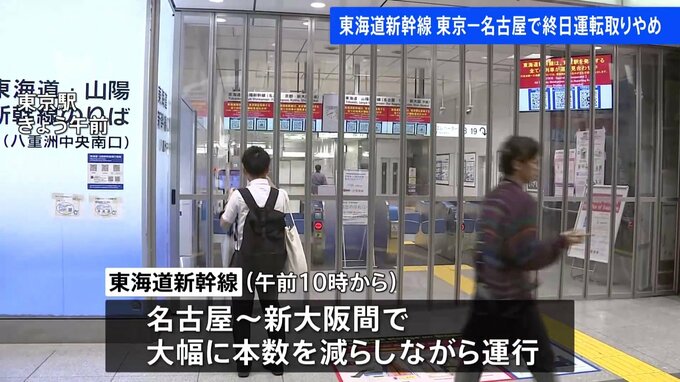 交通機関への影響について最新情報です。始発から全線で運転を見合わせていた東海道新幹線は、午前10時から名古屋-新大阪間で大幅に本数を減らしながら運行しています。ただ、東京-名古屋間は終日、運休が決まり…