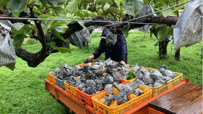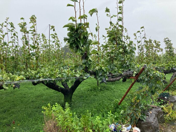 台風10号が接近・上陸した長崎県島原半島では、収穫を控えた梨園で2,000個~3,000個の梨が強風で落下しました。