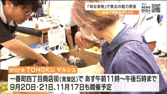 このイベントは、東北の特産品を通して地域の魅力を知ってもらおうと仙台市が主催し去年から始まりました。31日も午前11時から午後5時まで、青葉区の一番町四丁目商店街で開かれるほか、9月と11月にも開催が予定されています。