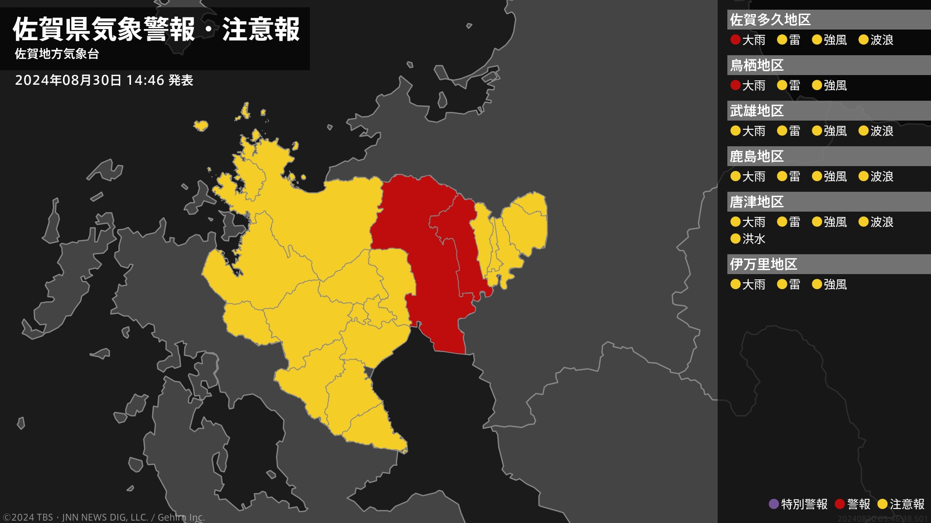 気象台は、午後2時46分に、大雨警報(土砂災害)を神埼市に発表しました。