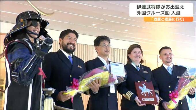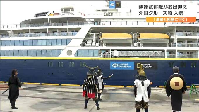 アメリカのアラスカを出港した外国船籍のクルーズ船が30日、仙台港に入港し伊達武将隊が船を出迎えました。このクルーズ船が仙台港に寄港するのは初めてです。