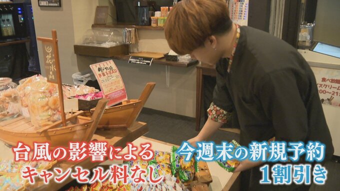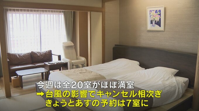 全20室の客室が今週はほぼ満室となっていましたが、台風の影響でキャンセルが相次ぎ30日と31日の予約は7室と、半分以下に落ち込みました。