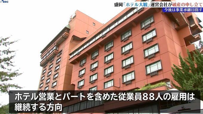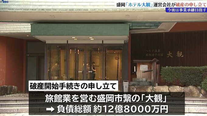 盛岡市の宿泊施設「ホテル大観」を運営している会社が30日、東京地裁に破産の申し立てを行いました。事業は保全管理人のもと継続する見通しです。