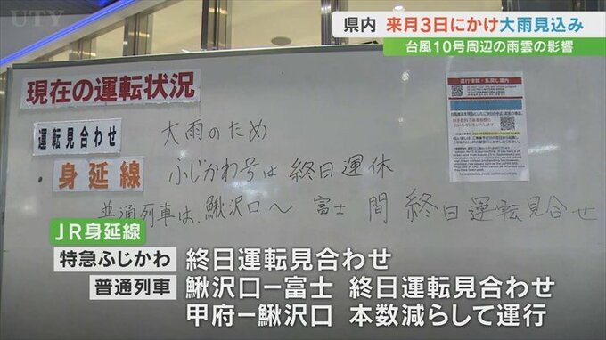 交通への影響です。JR身延線は特急「ふじかわ」が終日全線で運転を見合わせています。
