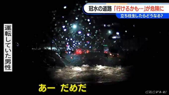 去年、愛知県豊川市で撮影されたドライブレコーダーの映像。車が冠水した道路を進もうとしますが…