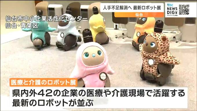 青葉区で始まった「医療と介護のロボット展」には県内外から42の企業が出展し、医療や介護の現場で活躍する最新のロボットが並べられています。