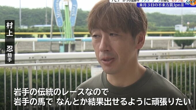 「今回、中央交流戦ということで様変わりしたなかで第1回でこういう馬に騎乗できるのはほんとに光栄ですし、岩手の伝統のレースであるので岩手の馬でなんとか結果出せるように頑張りたいです」