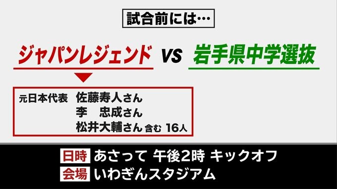 そして試合前の午後2時からは元日本代表選手と岩手県中学選抜チームのスペシャルマッチも行われます。