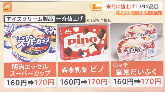 9月の値上げ 1392品目 冷凍食品も“定番アイス”も