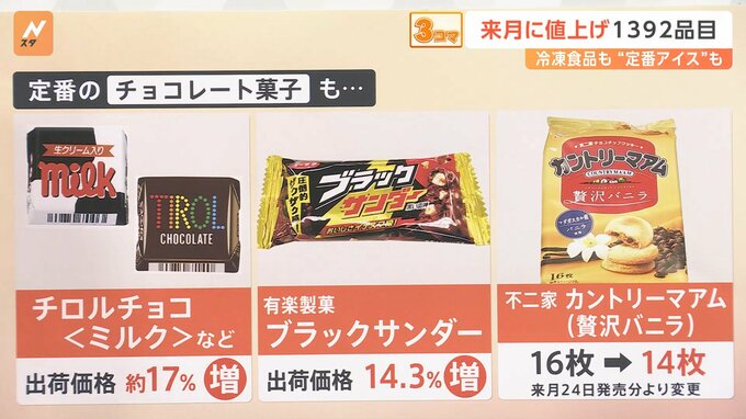 さらにアイスクリームだけではなく、定番のチョコレート菓子も値上げしています。