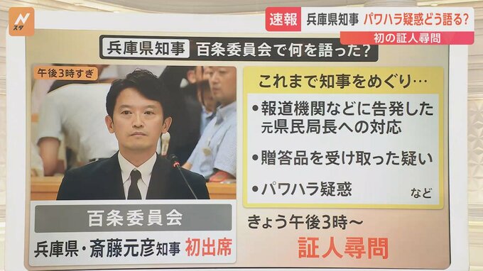 “パワハラ疑惑”がもたれている兵庫県の斎藤元彦知事。兵庫県・県議会の百条委員会で知事に対して初めての証人尋問が行われました。