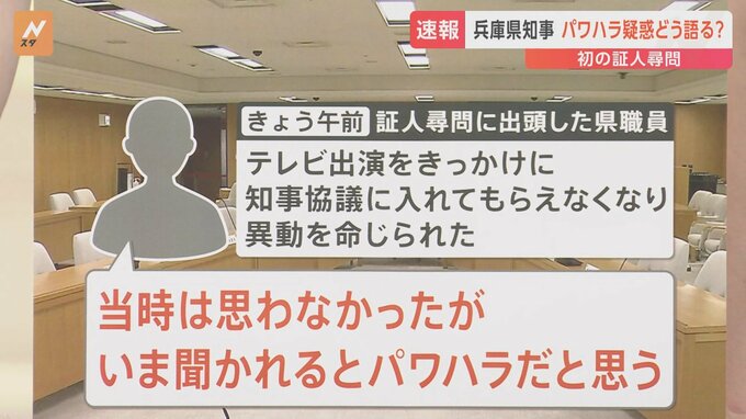 出頭した県職員は「テレビ出演をきっかけに知事協議に入れてもらえなくなり、異動を命じられた。当時は思わなかったが、いま聞かれると、パワハラだと思う」と答えたそうです。