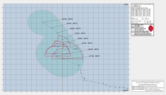 アメリカ側のトロピカルサイクロン(熱帯低気圧)が太平洋を西に進んでいて、日付変更線を超えて台風になる可能性がありました。