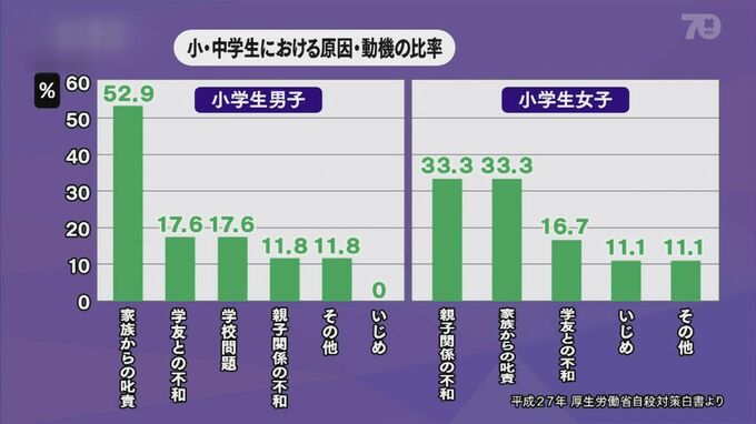 厚生労働省の統計によると、小学生の男女の自殺の理由は──