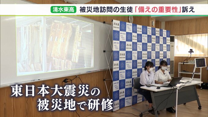 静岡市の清水東高校では8月31日、夏休み中、東日本大震災の被災地を訪問した生徒たちが全校生徒に向けて報告をしました。「考えている時間が命とりになる」被災地を回った経験から事前の備えの大切さを訴えました…