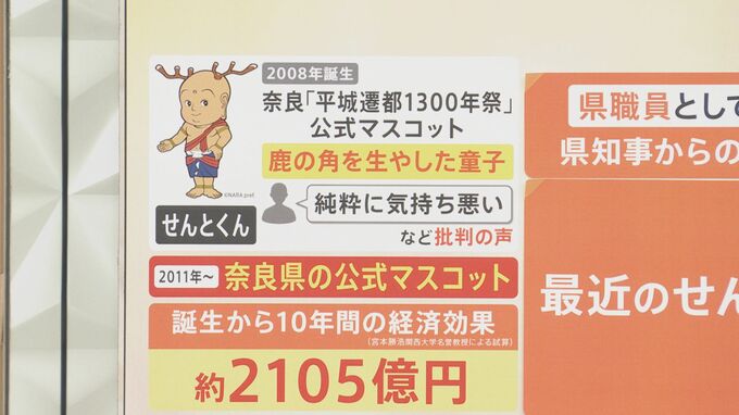 その結果、役目を終えた後も2011年から奈良県の公式マスコットに就任。誕生から10年間の経済効果は約2105億円との試算があります。(宮本勝浩関西大学名誉教授による試算)