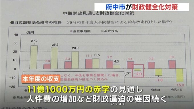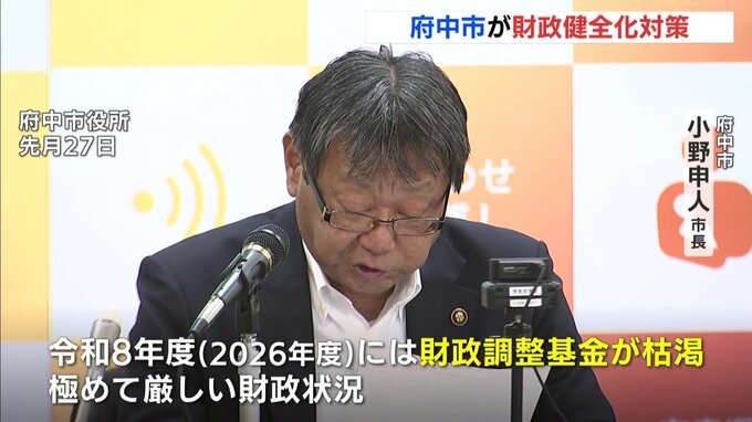 府中市は財政健全化対策として、▽25年度からの採用抑制や▽大型投資事業の廃止や凍結などを検討し、廃止などの対象事業は11月に公表する予定です。