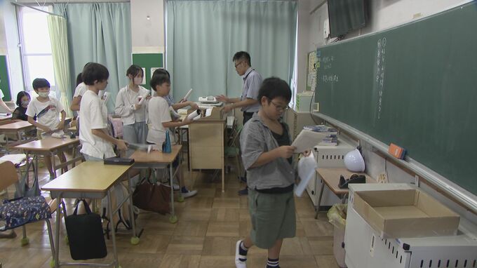 教室に戻った児童は宿題を提出し、久しぶりの再会に笑顔を見せました。