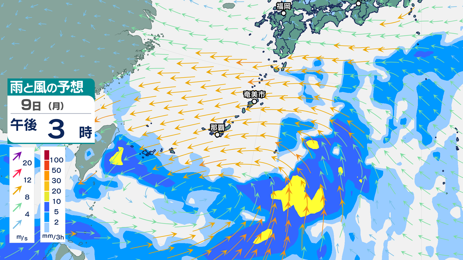 3. 【台風情報】「台風11号の次」は?沖縄・奄美に発達した雨雲と強風 9日(月)までの雨・風シミュレーション