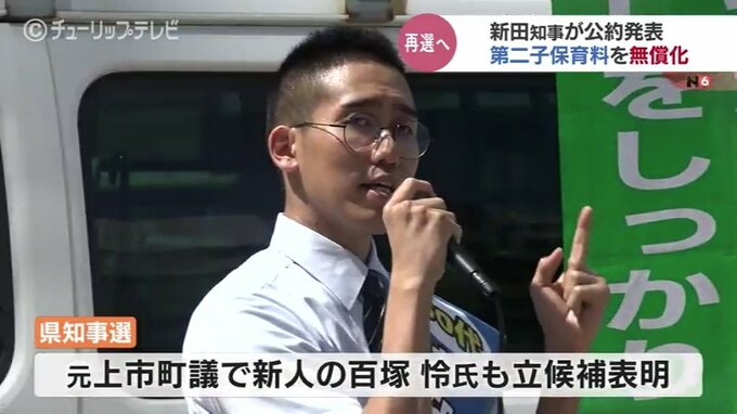 知事選を巡っては、元上市町議で新人の百塚怜(ひゃくづか・れい)氏も立候補を表明しています。