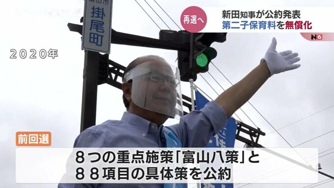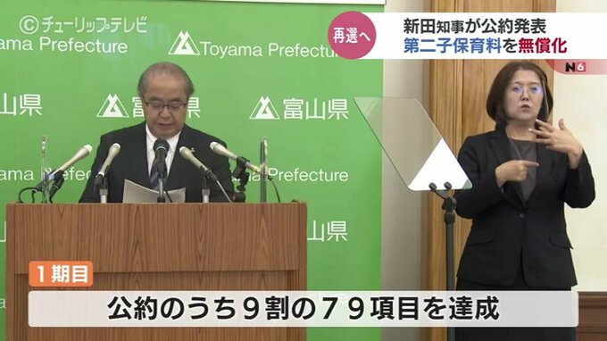 新田知事は前回選で8つの重点政策「富山八策」と88項目の具体策を公約として発表。1期目ではこのうち9割の79項目を達成したとしてその成果を強調しました。