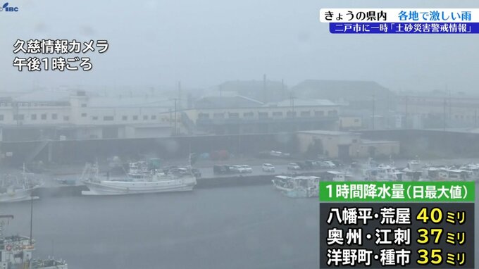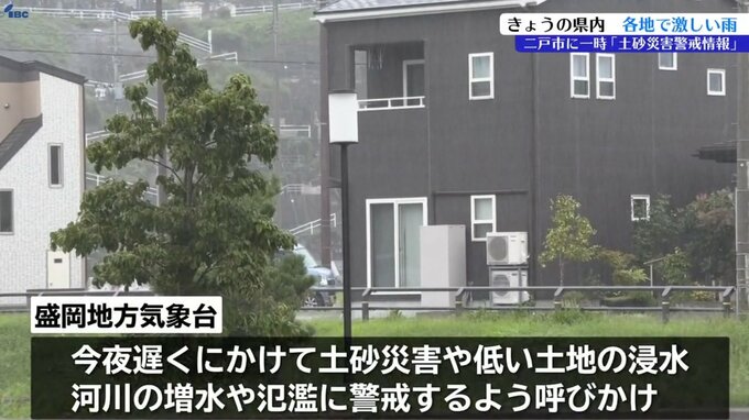 二戸市には一時土砂災害警戒情報が出されたほか、大雨警報が出された地域もありました。
